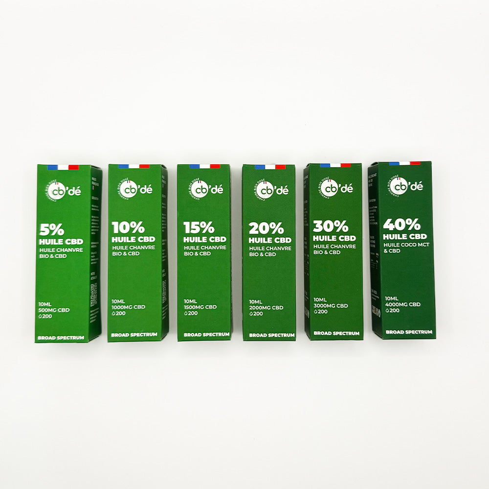 - Les Huiles Sublinguales : Des formules Full et Broad Spectrum (5% à 40%), conformes aux directives de l'ANSES, incluant des huiles de nuit (CBN/Mélatonine) et des arômes fruités (Passion, Orange).